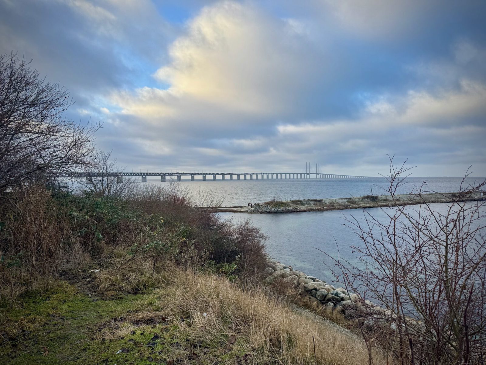 20.12.25 – Schweden, 3°. Nach einer etwas unruhigen Nacht am Nord-Ostsee-Kanal (bedingt durch die Schiffe und S-Bahn) haben wir uns auf den Weg Richtung Schweden gemacht. Das Wetter, das sich anfangs noch trüb und eher herbstlich als winterlich präsentierte, ließ kaum hoffen, die Fahrt über die Storebaeltbrücke und die Öresundbrücke bei Sonnenschein zu erleben.