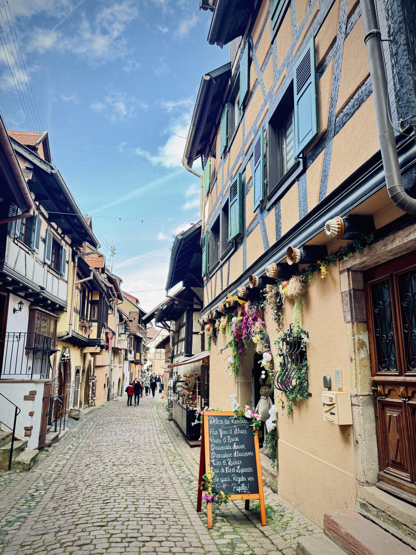 Schnell wurde uns klar, dass die gute erhaltene mittelalterliche Innenstadt tatsächlich ein Besuch wert ist. Wir kennen solche Stadtkerne bereits aus unserer Heimat (Idstein, Limburg, Bad Camberg). Eguisheim allerdings bietet gefühlt mehr von diesen alten Gebäuden in noch schmaleren Gassen.
